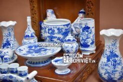 Bộ đồ thờ cúng này có màu sắc chủ đạo là màu men xanh kết hợp với nền trắng. Các họa tiết được những người nghệ nhân khắc họa vô cùng tinh tế các họa tiết hoa sen rất sinh động. Màu sắc sử dụng tao nhã giúp cho bộ đồ thờ trở nên sang trọng, lịch sự và đem đến ý nghĩa phong thủy tốt đẹp.